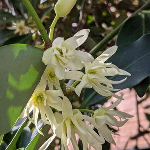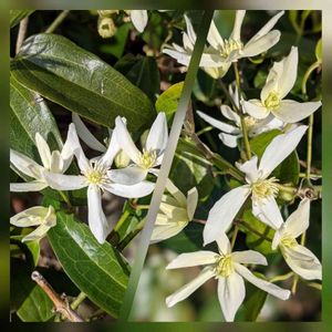 クレマチス・アーマンディー 📝 3月頃から開花する生育旺盛な常緑のクレマチス。 マスクをしていても甘い香りが漂ってきました♡