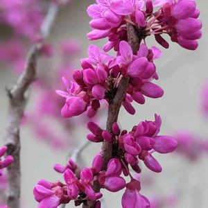 ハナズオウ(花蘇芳) ジャケツイバラ科 (マメ科と分類されることも) ハナズオウ属 📝 花の色が、古くから染料植物としているスオウ(蘇芳)の心材からとれる、美しい紅色に似ていることに由来する。