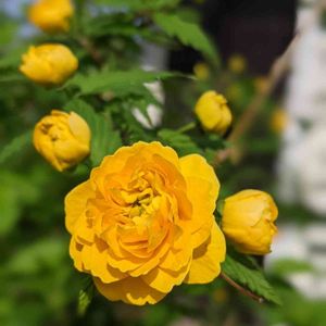 ヤエヤマブキ 七重八重 花は咲けども 山吹の 実の一つだに なきぞ悲しき 「後拾遺和歌集」より 📝 八重のヤマブキは雄しべが花弁に変化し、雌しべも退化して実がならないそうです。