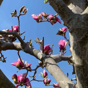 モクレン(木蓮) 📝 昔は、花がランに似ていることから「木蘭」と呼ばれていたこともあるが、今日では、ランよりもハスの花に似ていることから「木蓮」と呼ばれるようになった。