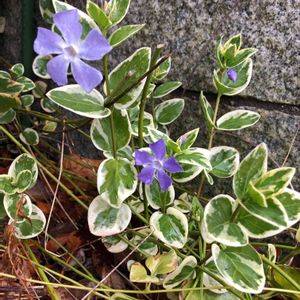 🌿斑入りツルニチニチソウ🌿 花も蕾もスックと立っているのが良い。 1月24日(日)雨の日の撮影 我が家のは斑がないニチニチソウです。 あちこちから生えるので抜いています。 キョウチクトウ科 ニチニチソウ属 原産地: マダガスカル 毒性: アルカロイドが全草に含まれる。
