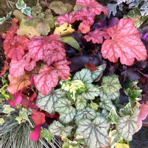 ☘️ヒューケラ☘️ ヒューケラの寄せ植えは、いつ見ても心惹かれます。 常緑性多年草だし、日陰でもok👌なので 我が家にも迎えたいカラーリーフです。💕