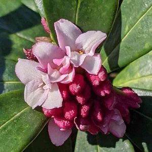ロドレイア 咲きました💖 昨年12月25日に投稿した蕾が開いてました❗❗ 📝 花のつき方や葉、樹姿がシャクナゲに似ているので、シャクナゲモドキとも呼ばれる。 📝 原産は東南アジアから中国南部。 香港では旧正月の飾りに欠かせない花とされている。