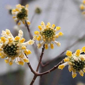 ミツマタ ジンチョウゲ科 ミツマタ属 📝 樹皮は、高級和紙や紙幣の原料として利用される。 卜伴椿のあったお宅のお庭にありました🌼