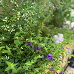 最近の小庭から青と紫のお花たち💜🩵💙 ①②ルリマツリ 何度目かの満開🩵 ③スーパートレニアカタリーナブルーリバー 一昨年から挿し芽で繋いできたもの 今頃になって、とても元気に広がってきました💦 ④クレロデンドロム・ブルーウイング 青い🦋がヒラヒラ〜💙 思い切って切り戻してもぐんぐん伸びて、また咲いてくれるのはルリマツリと一緒😊 ⑤ゴシキトウガラシ 紫の実がツヤツヤ💜 紫の影には赤い実もあります❤️ 1ヶ月ほど前に、しなびた実がついていたおつとめ品をお迎えして植えました😊