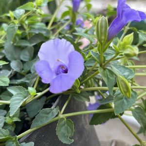 おはようございます😊 PWさんの ✨スーパートレニア✨ 💜カタリーナブルーリバー💜 冬越しからやっと花が咲きました🥰 まだ又花数少ないです😅 暑さに負けず頑張って欲しい 2、3picは今年お迎えした 🤎ラムレーズン🤎 モリモリで垂れてきてる👍 3日前よりいくつかの鉢を 50パー遮光を掛けました お友達が掛けたので 真似しました🤭 切り戻しからの復活がこの暑さで遅く😆復活できないのもあります ナメクジにやられたのもあります😂