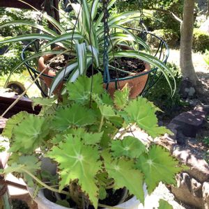 レックスベゴニア 先日のお買い得セットに入っていた リマラブという名のレックスベゴニア🌿 涼しい木陰にぶら下げて写しました🩵 暑さが苦手らしいので、真夏は室内に 避難です ♪ね! 三連休、暑くなりそうです🥵 無理せずに、涼しい所で過ごしたいと 思います〜🙋♀️