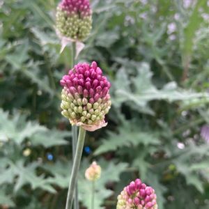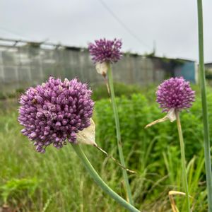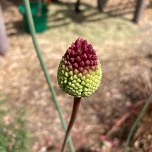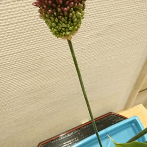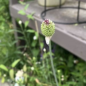 アリウム・丹頂 まだかなまだかな🧐 去年11月に球根を植えて ネギみたいな葉っぱが モサっと伸びて やっと茎がびよ〜んと出て ネギ坊主状態👀 うっすらピンクになってきたけど なかなか花が出てこない💦 長雨のせいでしょか☔️ 焦らすわねぇ😆