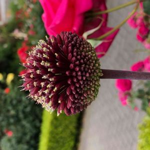 アリウムの丹頂が可愛くなりました😊 ひょろっと背が高いのに、よく折れないなぁと思ってます👀