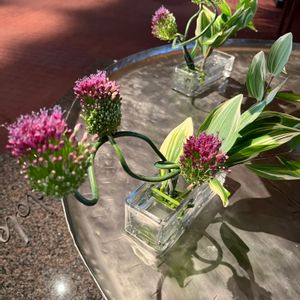 アリウム 丹頂✨ 去年秋🧑🏻🌾植えた球根 5つに4つが出てきて🌱 4つの蕾の中1つは💦 バラの剪定に取られて🫥 咲いたのこの3つです💖 切花でもと思って迎えしたが どうして?心が痛む🥴 今年はこのままで❇️ ゴージャスで派手な印象🌟 エレガントで優雅だなぁ💗