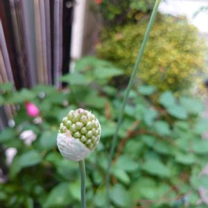 アリウム 丹頂🌱 球根を埋めて初めての蕾です😊💚ようやくここまできましたヽ(=´▽`=)ノ🌱どんなふうに咲くのか楽しみです😉💞