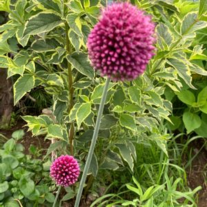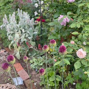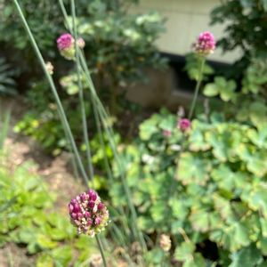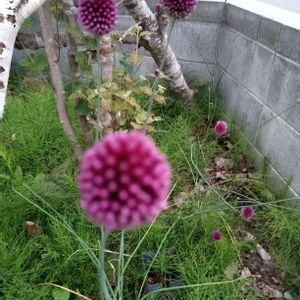 アリウム丹頂 別名: ボールヘッドオニオン ドラムスティックアリウム 赤紫色の小さい花が可愛い球根植物。 ネギ科 ネギ属 原産地: ヨーロッパ 開花期: 6〜7月 花言葉: 「無限の悲しみ」「くじけない心」 花径: 3㎝ほど