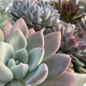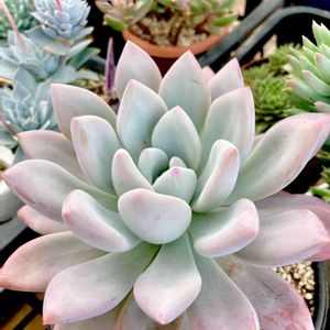 🏷毎月13日と14日は葉挿しの日に参加します 一年半近くで白牡丹丼ができてきました😊 となりはオパリナ。 オパリナは一枚の葉からいくつお子さまができたことか。 葉挿しは面白いですね😄