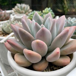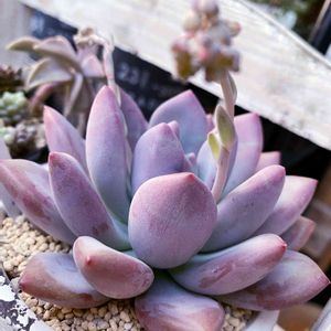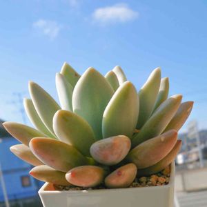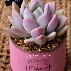 ⏪前のpicより 【グラプトベリア属 オパリナ】 Graptoveria 'Opalina' コロラータ×アメジスティヌムの交配種 ネームタグは【オパリナ】🏷 前の【Yvonii】のpicで オパリナに触れましたので、 投稿させていただきました 2年前に長野に旅行した際に 「堀川カクタスガーデン」さん から購入した古株 https://hcactus.stores.jp/ 作出者はラウリンゼと同じく、 カリフォルニアを拠点とする 多肉植物愛好家&ブリーダーである Robert Grim(ロバート・グリム)氏 サボテンと多肉植物ジャーナルに 1988年に最初に名前を掲載 「オパリナ」の語源はイタリアで 「半透明の板ガラス, 乳白ガラス」 「陶器の表面を乳白色にする釉薬」 の意味 パウダーがかった乳白色の葉から この名を命名したのでしょうか ロバート・グリム氏作出で、 【グラプトベリア属 ブラッシュ】 Graptoveria 'Blush' 韓国名 블러쉬 ☝はオパリナの姉妹苗で、 ややふっくらした葉が特徴の 新品種になるそうです 原産地はメキシコ🇲🇽 花の色はイエロー&オレンジ ☆Source☆ 【San Marcos Growers】 https://www.smgrowers.com/products/plants/plantdisplay.asp?plant_id=3804