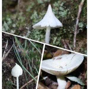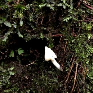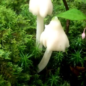 白いキノコと苔‼️ シロイボカサタケでしょうか❓