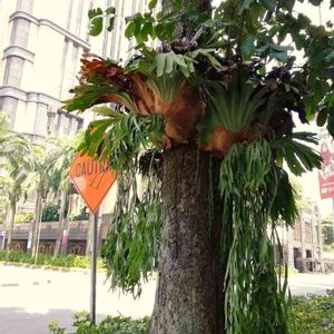 シダ好きにはたまらない街路樹の姿❗ ほとんどの樹はタニワタリが着生していて、中にはビカクシダに囲まれた樹も✨