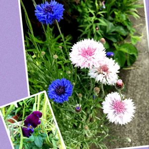 こんばんは♪ 矢車菊さんが咲き始めました\(//∇//)\🩷💙 一緒にビオラさんが…ん? いらっしゃいませ🤗
