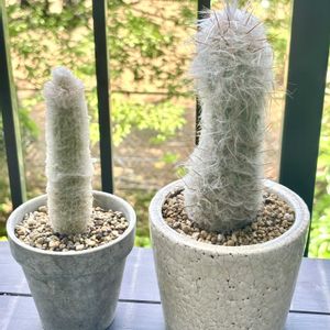 ウサミミちゃんとクマちゃん 本日5/11(土)の夜21:00〜くるみガーデンの オンラインショップで久しぶりに うさみみちゃんを販売します💝✨ うさみみちゃんは 2本の柱サボテンでお耳を作り、 丸い玉サボテンで頭を作っています☝️ サボテンの寄せ植えなんです🐰🍒 できることなら、いつも作っていたい作品なのですが、 作るのがとても大変なのです 何が大変かと言いますとサボテンを揃えるのが大変なのです😂💦 白い毛のサボテンが昔に比べてあまり流通してないので 何年かかけて集めたりしてます 外国から輸入する白い毛のサボテンの種の値段も 以前より上がっているそうです なので今回のサボテンは ずっと私の所であたためて 育ててきた子達が多いです💓 耳と頭を合わせて丁度良いバランスになる様に組みました❣️ 植えるのは簡単です❣️ 同じ太さ、同じ長さ、同じ毛並み、など双子みたいなサボテンを合わせるのが意外と一苦労💦 色々と工夫をして いくつかのうさみみちゃんが この度誕生しました✨✨ やっとオンラインショップに出せます✨ 皆さま、大変長いことお待たせしました💓 ちなみにサイズは小さな子から大きな子までいます❣️ 頭のサボテンも何種類かあるので 今、お花が咲いている子もいれば 咲き終わった子もいますが、 許してくださいね 中にはブサカワな子も居るかもしれないけど、 私にとってはどの子も可愛いです お迎えして可愛がってもらえたら嬉しいです😂💕💓