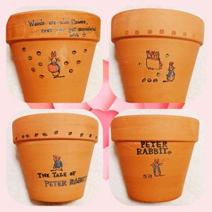 一応DIY?ただの模写。 ピーターラビットの植木鉢がずっとほしかったので、素焼鉢に自分で絵を描きました🐰むずかしかった〜 何を植えようか楽しみ😆