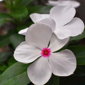 ニチニチソウ(日々草)🍀 おはようございます! 休日花散歩にて アップで花の質感が分かるように撮ってみました‼️真ん中のピンクが可愛く素敵でした✨✨😃 🏷️白い水曜日 今日も素敵な一日を🍀