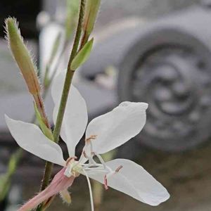 お寺に咲くガウラ 雲行きが怪しい