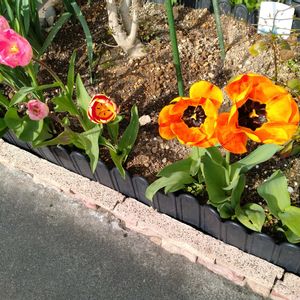 初めて知ったこと🙂↕️ チューリップに香りがあったなんて(*˘︶˘*).。*♡ ・左オレンジ色 まさしくチューリップの香り ・その後ろピンク色 薔薇の様な香り ・真中が黒色 確かに覚えのある花の香り とっても良い香り ・縁取り黄色の赤 西瓜!