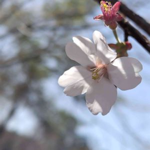 山形市野草園。 数輪ですが、奥丁字桜(オクチョウジザクラ)が咲いていました。 ※散り際