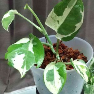 🪴斑入りモンステラ🪴今朝のドリル1号様ꔛが開いてからのその後🌿午前は🔆直射日光を浴びてます😊 葉の緑も濃くなりグラデーションで逞しく見えます🧐 散り斑は…ポトスのマーブルクイーンの斑が好みだけど、欲張らずに冬越しと巨大化を目指して楽しみながら育てます(ง˶ •̀ ̬•́˶)ง