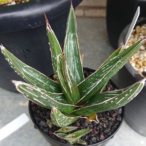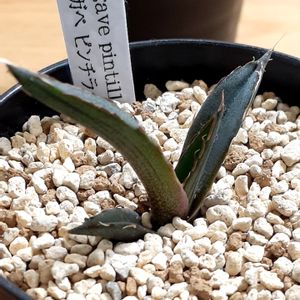 アガベ ピンティラ 葉表裏棘選抜。 約一年前にネットで買った奴。葉の棘が出てきて面白くなってきました。色も黒くかっこいいし どう成長するか楽しみな個体です。