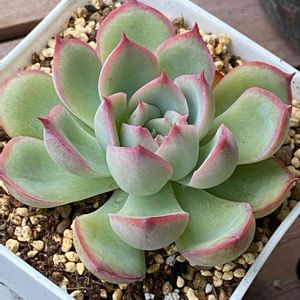 アルバビューティーさんです。 玄関の中に置いているので、ピンクになっていません。 お外の多肉は雨やら、雪がちょっと降った時に傷んでしまったのでこの子は無事でした😊