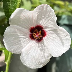 こんにちは😃 昨日からの雨も上がり曇り空です☁️ ①🤍タカサゴフヨウ🤍 花友さんから頂いたのがやっと咲きました🤍色白美人さん🤍 花ぼっこさん ありがとう😊💕 ②フウセンカズラ 種まきから育てたので、小さなお花や緑色のフウセンのような実も素敵で沢山出来ています💚可愛い💚 ③④ミニバラ お花の少ない庭に雨のお陰で元気に咲いてくれています🩷🤍🍃 ⑤りんご🍎 息子の趣味で植えたりんごの木。まだ実は小さいけどりんごらしくなりました。秋には食べれるようになるのかな🍎去年は上手くいかなくて、落ちてしまってたけど🤔
