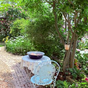 今日は朝からいい天気です 薔薇の花殻摘みをして木陰でひと休み、爽やかな風が吹いて来ました