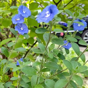 雨上がりの日曜日の朝です。 爽やかなブルーです。 寄せ植えのビオラの跡地に植えてみました🎵