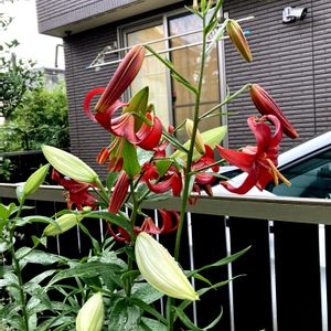 シャンデリアリリーに昨年に 続き今年も花が咲いた🌸 初めて咲いた昨年は蕾が沢山 付いていたが今年は少なく 気になる𓂃܀ꕤ୭* 球根植物は毎年咲くからと 勝手に思いこんでいたが カサブランカは2年目には 咲かなかった‼️ 掘り出さなくていいものか これを機に少し増えた球根植物ܾの 育て方を調べてみよう❤︎ܾ 🌰🍀*゜