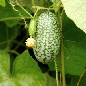マイクロキュウリ 実家のマイクロキュウリが大暴走💨 昨年私がタネを撒き 芽が出たところで母にあげた 我が家のは数日で虫に食べられ枯れた 実家は山地なのでよく育ったようで、 実も沢山なった✨ 今年はそのこぼれ種が育ち大暴走‼️ 暑さが和らぎにょきにょき伸びて 今頃実をつけ始めたらしい 山椒とロウバイの木に這い上がり なんと、2メートル超え!?