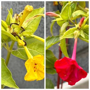 おはようございます☁️ 今日のお花、オシロイバナ。 実家にあるので見に行ってみました。 雨のせいなのか、もう遅かったからかほとんど咲いてませんでしたが、発見をしましたよ‼️ ピンクのは赤い茎、黄色は普通の茎でしたよ。 いつも花ばかり見てるから気づかなかったわ💦