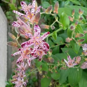 今日のお花🌸ホトトギス🌸 ①②③職場の庭で 毎年 咲いてくれます💕(9月末) ④今のホトトギスさん🤍💜 ⑤実家のホトトギスさん🤍💜