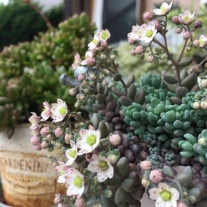 パープルヘイズ💜セダム 別名:姫星美人 モリモリにしようと植えてまだモリモリになっていないけど…なんと 可愛いお花が咲きました~っ💖