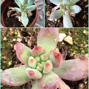 12/24に投稿した名前に惚れて買ったブルーエルフ😤初めはしおれてましたが水をあげたら右上のようにプクプクに😁現在大きさはさほど変わりませんが色づいてます😊 あっΣ(゚д゚;)❗昨日は久しぶりに同じPIC2枚あげちゃいすいませんでした🙇♂️気付いた時にはコメント入ってたので消すことが出来なかった😅眠い中やったらダメやね😩って今も眠いけど(*´罒`*)ニヒヒ☆ 昨夜は夜勤で朝帰ってきて地震のニュース見てビックリΣ( ̄□ ̄!!これから余震もあると思うので気をつけて下さい😲