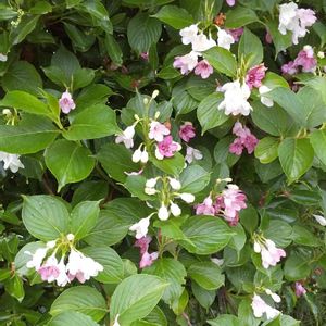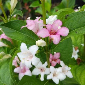 調べたら、ハコネウツギのようです。 白・ピンク・赤、かわいらしい花達です。 剪定時期は花が終わった後とのことなので、終わったら剪定してみよう✂️
