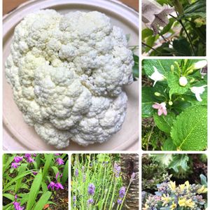 今日のカリフラワーの収穫 なんと700g🤗昨日のは、500g❣️もっと苗買えば良かった😅雨の朝、ひっそり彩ってくれているお花ちゃん達😊