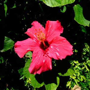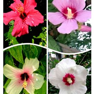 【南国シリーズ &似てるシリーズ】 どれがハイビスカス? どれがムクゲ? ムクゲは 「東洋のハイビスカス」 と呼ばれています。 ハイビスカスもムクゲも、アオイ科フヨウ属の同じ仲間です。 どおりで似ているはずです! 違いは、花の中心にある柱頭部分です。 また、今回は葉っぱを載せませんが、葉っぱを見ても、違いが分かります。 ○ハイビスカス 柱頭の先端に雌しべと雄しべが付きます。 雌しべ・雄しべは、色が着くことが多いです。 葉っぱは、艶があり、切れ込みが浅いです。 ○ムクゲ 柱頭の雌しべの軸の途中から下の方(花の奥の方)に、雄しべが付きます。 ムクゲの雌しべ・雄しべは、白っぽい色です。 葉っぱは、小さいですが、切れ込みが鋭いです。 写真のお花の柱頭部分を見ますと ○左側上下 柱頭の先端に雄しべと雌しべが付いているので ハイビスカス 右側上下 柱頭の下まで雄しべが付いているので ムクゲ ちなみに ムクゲの花とフヨウの花も、よく似ています。 ムクゲとフヨウの違いは、葉っぱを見ると分かるそうです。 ムクゲの葉っぱは、小さく、濃い緑であるのに対し、フヨウの葉は、花と同じぐらいの大きさで、薄い緑色だそうです。 ムクゲは、高さ3~4mになり、街路樹、庭木などとして植えられますが、フヨウは、低木で、冬には地上の幹が枯れるそうです。 今回の似てるシリーズは、このシリーズを発案された方から御示唆をいただきました。 感謝しています。