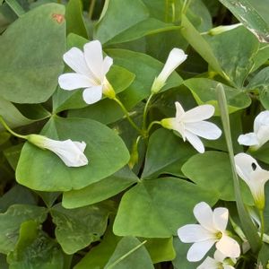 駅前公園の花壇に純白のオキザリスが咲いていました。😄 オキザリスの花は おひさまが大好きで 晴れると綺麗に咲いてくれますが 雨天や曇りがちだと 花は蕾んでしまいます。 純白のオキザリスが お気に入りですが その他に 黄色 ピンク 紫 オレンジなどがあります。🤗✨ 南アフリカケープ地方原産。 カタバミ科カタバミ属の球根性多年草