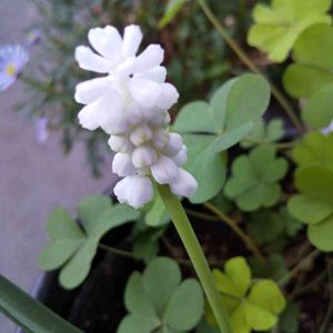 今朝の西側ベランダ…に… 真っ白なムスカリさん…いました… 🤍🌼(ӦvӦ。)🌼🤍 💚🌱🚿💓🎀✨🤗 純白マニア…🏷付けました…