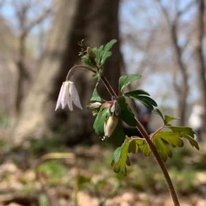 ヒメウズ キンポウゲ科ヒメウズ属 この子見たさに足を伸ばしました。 この子もスプリングエフェメラルのひとつ? 花言葉 「不変、志操堅固、ずっと待っています」など。 秋から目立ち始め、春に花を咲かせて夏草の茂る頃には目立たなくなるので、早春植物のひとつではないかと思われる。小型の植物であり、花も小さくて目立たないが、清楚である。花弁に見えるのは顎片で長さ5-6mm。中心部にある花弁も5枚で、おしべを取り囲むように配列されており、長さ2.5mm。白色であるが、ほんのりと紫色を帯びている。花の後に2~5つのキンポウゲ科特有の種子を稔らせる。和名のウズは、鳥帽(トリカブト)のことであり、小さなトリカブトの意味となる。