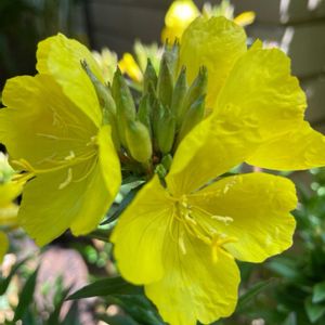 今日のお花 マツヨイグサ プランターに植えたマツヨイグサです。 黄色い色が優しい🩷 今朝の朝顔、薄い水色🩵が咲いています。 マイガーデン🪴