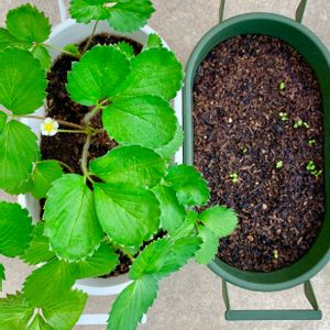 🍓350🍓イチゴ 苺のいまです✨🪴✨ 左側が赤い苺(🍓214🍓)です❤️🍓❤️ 種を蒔いてから3年が経ちました😊 今朝お花が咲きました🌼 そう言えば、種を蒔いてから最初にお花が咲いたのも 8月でした🎐 右側が白い苺(🍓202🍓)です🤍🍓🤍 今年、お義母さんの畑で収穫して美味しく頂き、 蒔いた種から芽を出してくれました🌱 みどりのまとめ「イチゴのお部屋」に 写真追加していきます📸 花言葉は『あなたは私を喜ばせる』『尊重と愛情』『先見の明』『幸福な家庭』 *My garden*