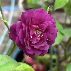 薔薇 ミッドナイトブルー 赤紫、丸弁咲き、小中輪房咲きの花 スパイスにティの中香 今日も素敵な日の始まり🌹