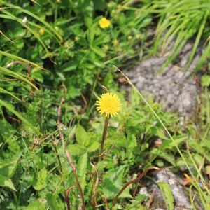 タンポポかと思ったら、調べるとミヤマコウゾリナというようです。 コウゾリナ の高山種で背丈が低く、コウゾリナの名前は、 茎や葉にある剛毛 が剃刀のように鋭いことからついているそうです。