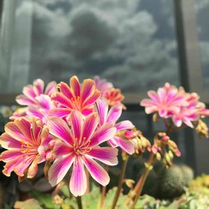 レウィシア 咲いてきました😊 外では桜が満開🌸になりました。 花見は、自粛ですので、 仕事に行く道すがら、桜を眺めて 通勤しています😅